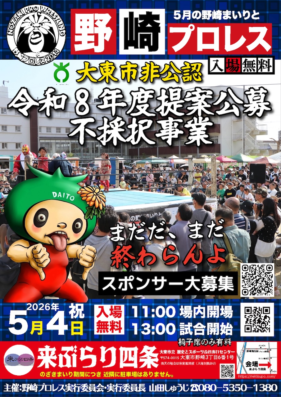 2025年4月21日 / 最終更新日時 : 2025年5月19日 やまだ しゅうじ 2025野崎プロレス 【出店】イベント出店参戦情報! 詳しくはのざフェスインスタhttps://www.instagram.com/nozafes/
