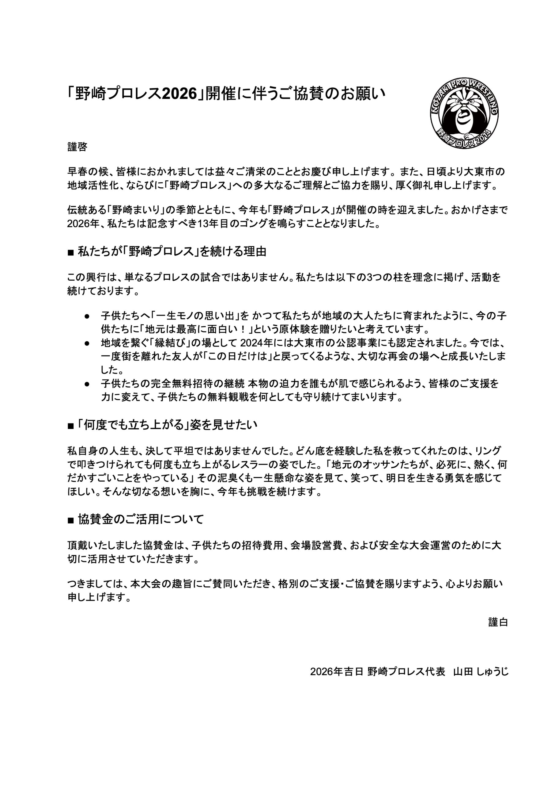 野崎プロレス2026 協賛のご紹介