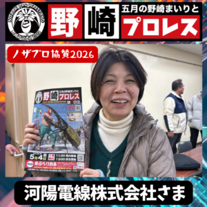 2026年2月16日 / 最終更新日時 : 2026年2月16日 やまだ しゅうじ 2026野崎プロレス 野崎プロレス2026 協賛のご紹介 株式会社 山田製作所 株式会社つつみ屋 河陽電線株式会社 株式会社S&S ビジネスカウンセリング&コンサルティングかとびん 共有: X で共有 (新しいウィンドウで開きます) X Facebook で共有 (新しいウィンドウで開きます) Facebook 友達にメールでリンクを送信 (新しいウィンドウで開きます) メールアドレス 印刷 (新しいウィンドウで開きます) 印刷 関連